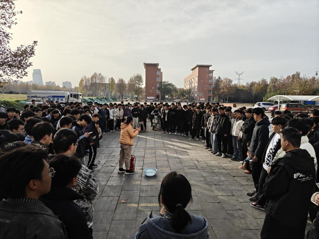 哨声吹响,演练正式开始。同学们在辅导员和学生会干部引导下,从就近安全出口沿楼梯右侧有序疏散,2分钟内全部撤离至安全点。随后,辅导员按班级清点人数,确认全员到齐后向现场指挥部汇报。演练全程高效规范,达到预期效果。演练结束后,宿舍管理员对消防器材的使用进行培训,提醒学生注意宿舍卫生与消防安全。最后,姚红艳总结此次演练全体师生反应迅速、配合默契,展现出良好的应急处置与团队协作能力。她强调消防安全无小事,提醒师生珍爱生命,积极学习消防知识、掌握基本技能,方能防患于未然。